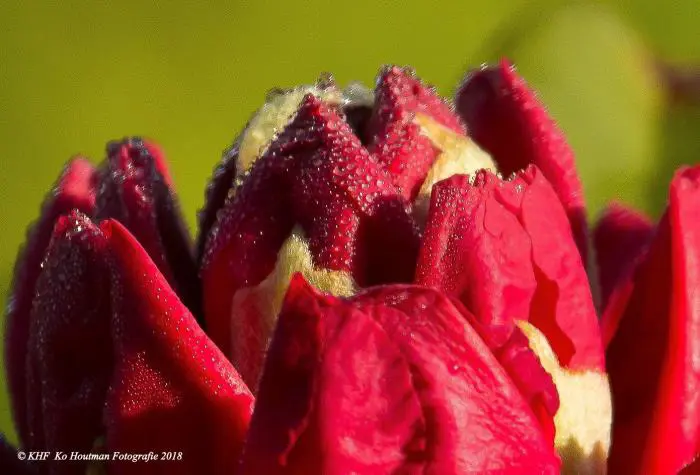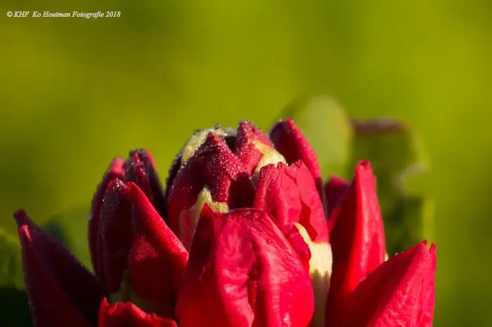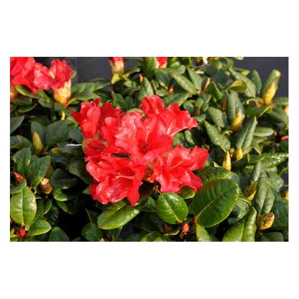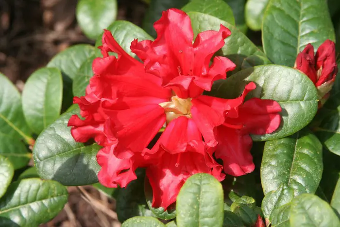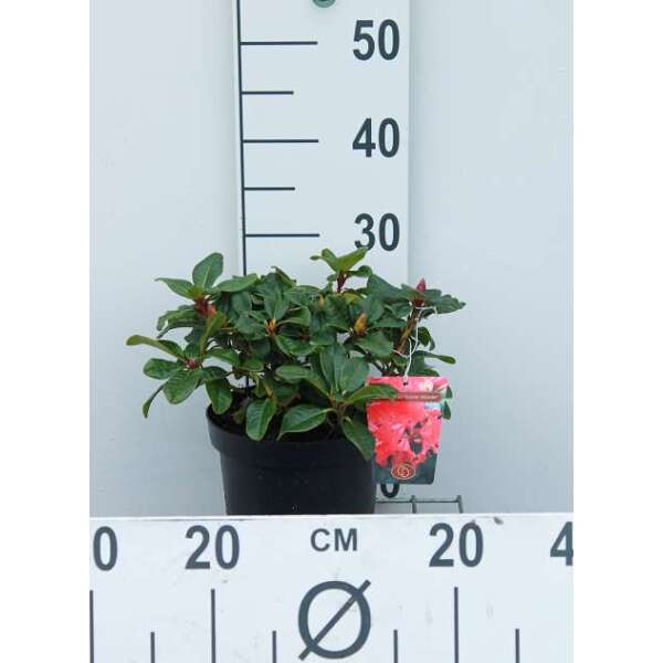 C’est un arbuste bas et large, richement fleuri de fleurs rouges.