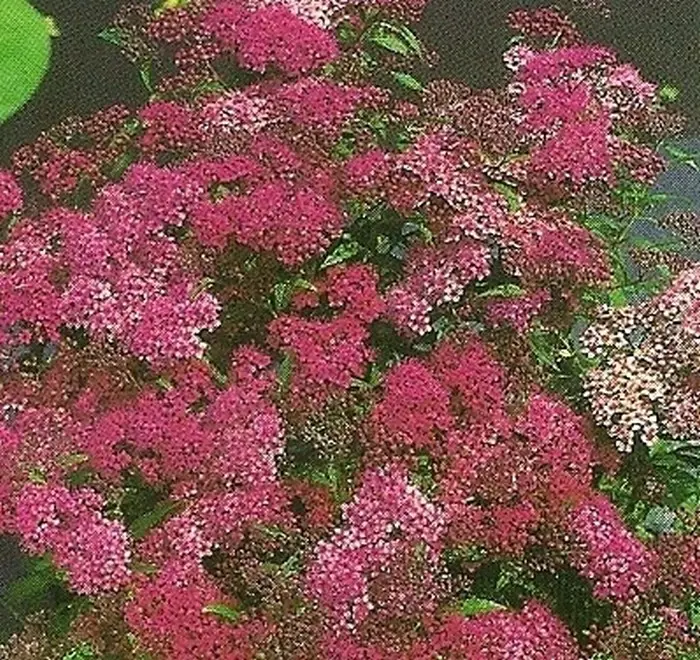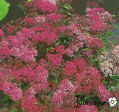 Spiraea japonica 'Dart’s Red' est un arbuste robuste, compact, à grande croissance large, avec des feuilles allongées qui deviennent rouges au printemps à vert foncé en été.