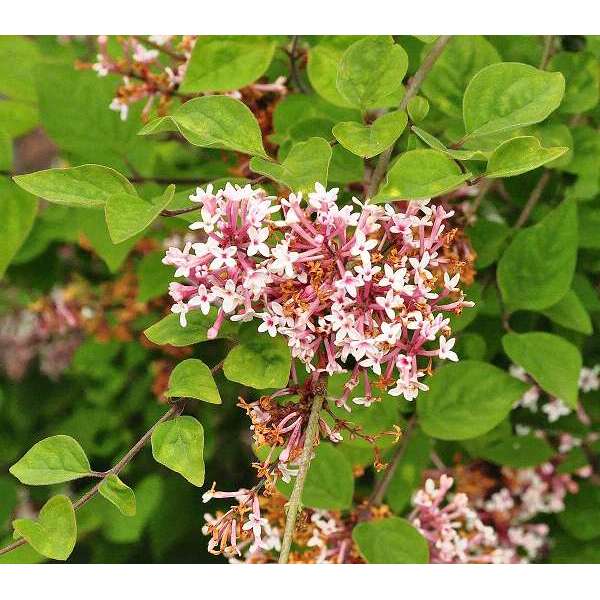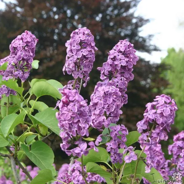 La Syringa vulgaris 'Andenken an Ludwig Späth' est un arbuste expansif ou un petit arbre avec des feuilles vert foncé en forme de cœur.