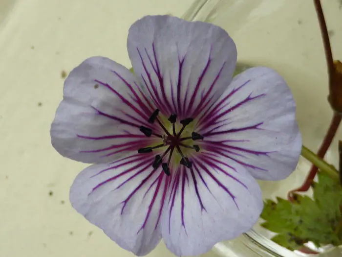 Les fleurs ont une teinte très remarquable, bleu glace avec des veines violet foncé.