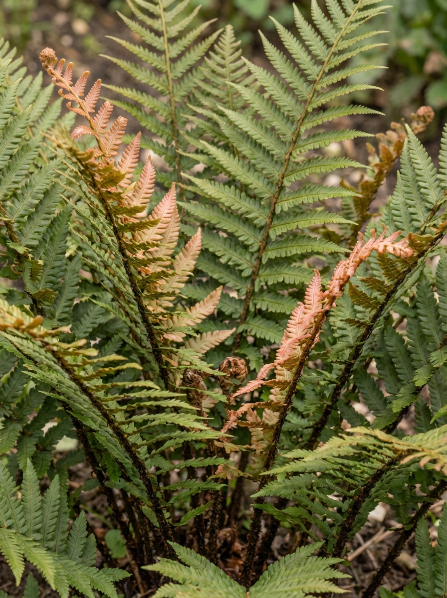 Dryopteris lepidopoda est donc très justement appelé sunsetfern en anglais, ce qui signifie « sunset boating » (navigation au coucher du soleil). Vient de Chine et du Japon.