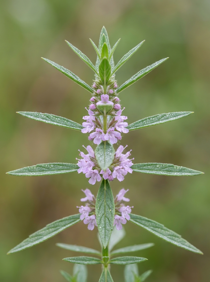 Les feuilles ressemblent à des pétales lavande, sont petites, lancéolées et de couleur gris-vert.