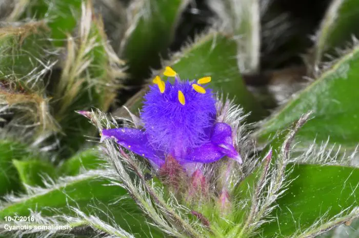 Cyanotis somaliensis est une plante vivace originaire d’Afrique de l’Est, du Rwanda, de Somalie, mais elle y est conservée comme plante d’intérieur.