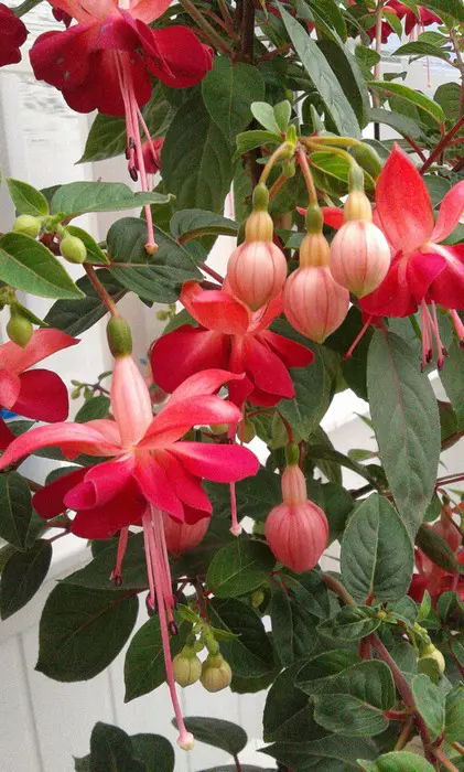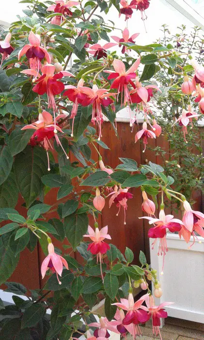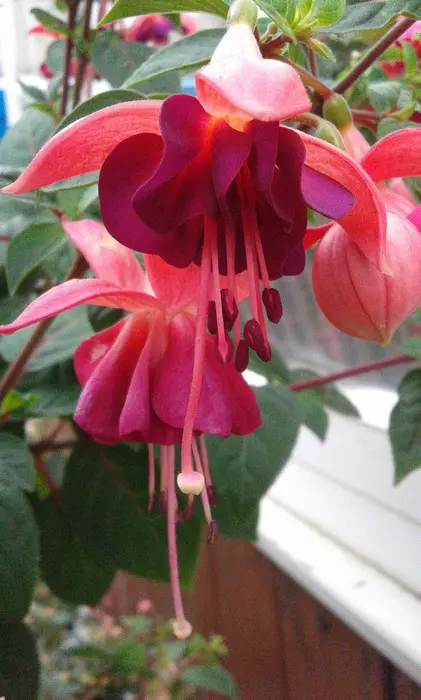 Fuchsia 'Paula Jane' est une plante compacte, à croissance verticale et robuste, avec des fleurs semi-doubles.