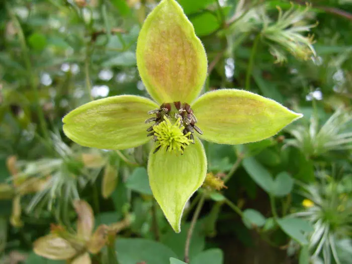 Les fleurs sont brun-violet-rouge avec un jaune vif à l’intérieur, suivies de magnifiques têtes de graines soyeuses.