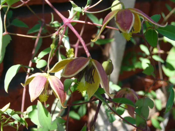 Clematis 'My Angel' est une grimpatrice de 250 cm avec des feuilles vert plumeuses fleurissant de l’été et des fleurs hochant.