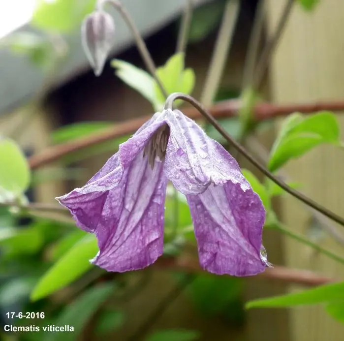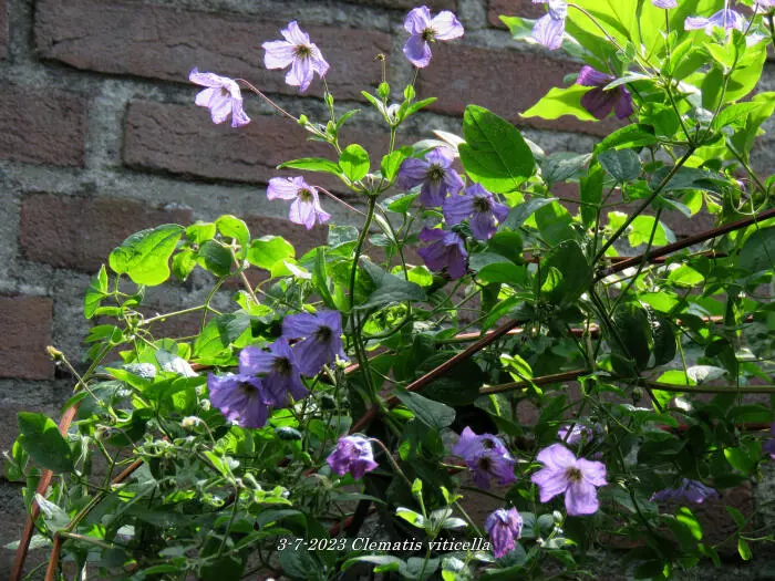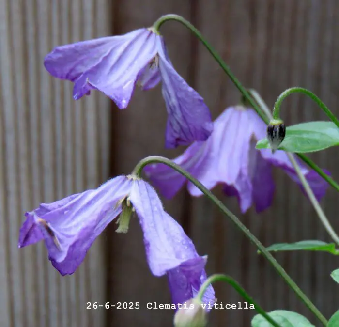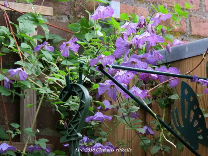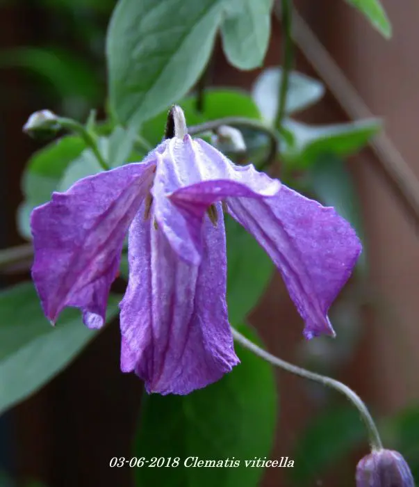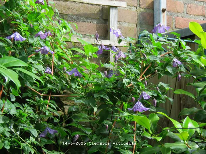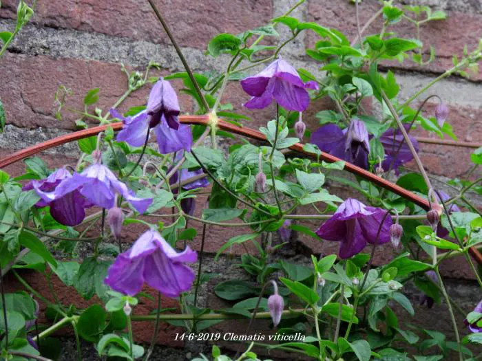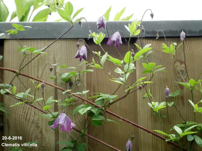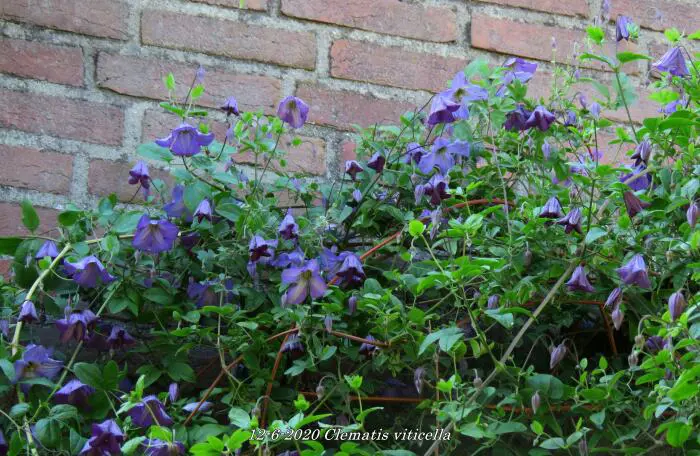 Clematis viticella pousse naturellement en Asie du Sud-Ouest ainsi qu’en Europe du Sud et du Sud-Est. C’est une espèce forte à petites fleurs, résistante aux maladies, avec des fleurs violette-bleu et des étamines jaune-vert.Groupe de taille 3.