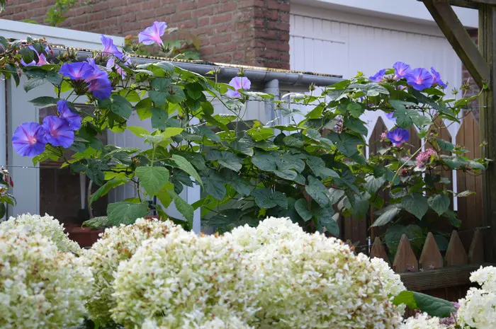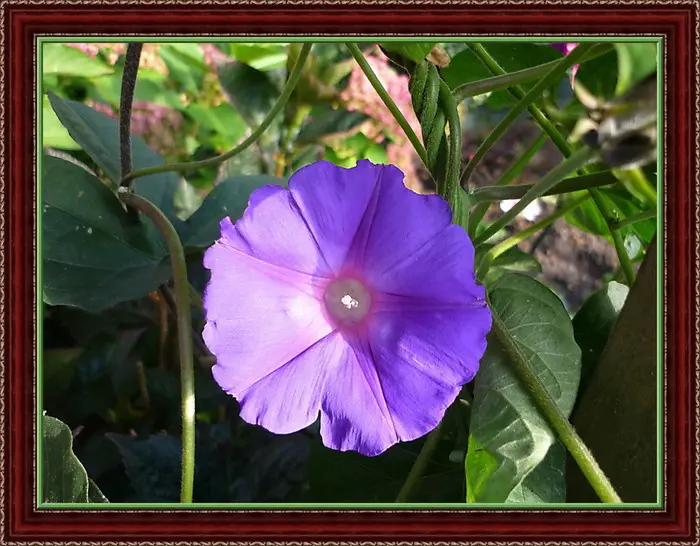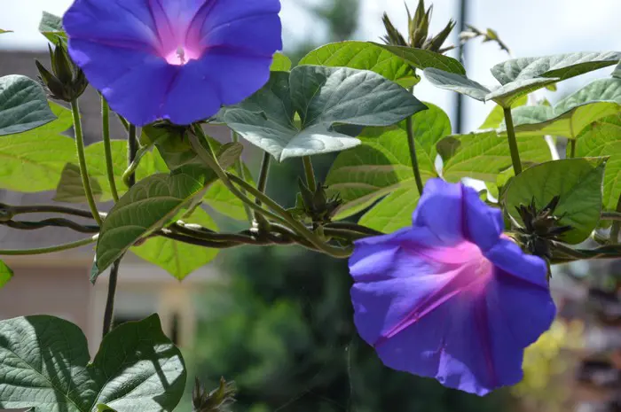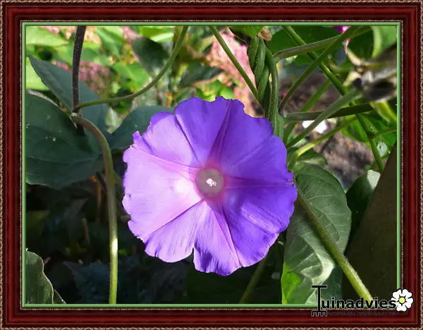 Elle fleurit très abondamment avec de grandes fleurs bleu-violet en forme d’entonnoir le matin, qui deviennent ensuite rouges par temps chaud avant de refermer à nouveau l’après-midi.