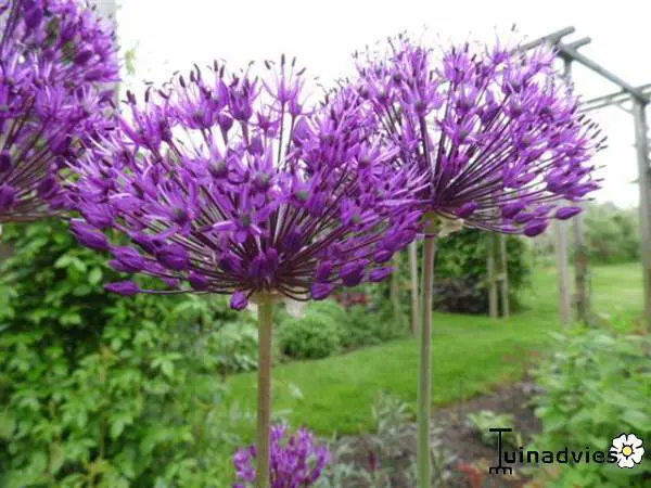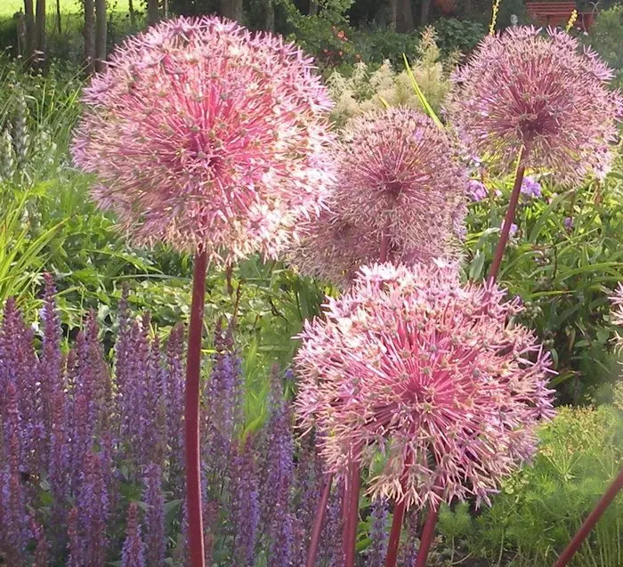 Ce géant atteint une hauteur de 1,5 m avec de grandes fleurs sphériques lilas à rose violacé de 10 à 15 cm sur des tiges hautes et robustes.