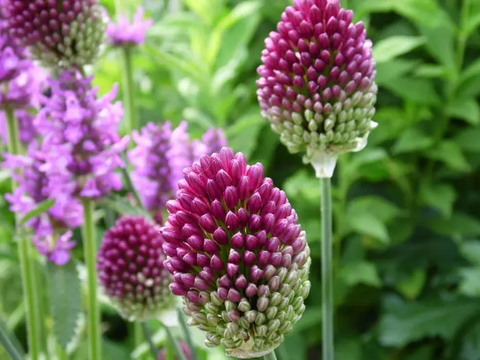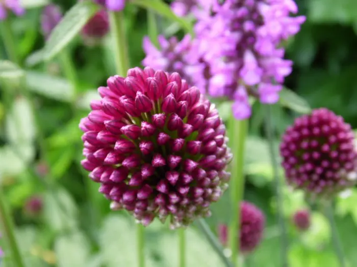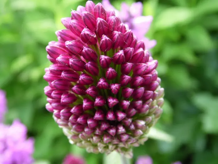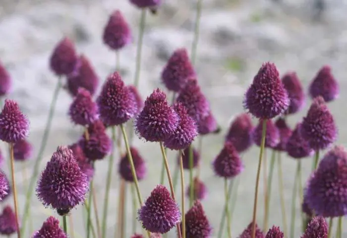 Un ail ornemental sauvage, que l’on reconnaît en été à ses petits pompons en forme d’œuf avec des fleurs très serrées sur de fines tiges creuses. Les fleurs s’épanouissent d’un rose profond, du violet ou du rougeâtre.