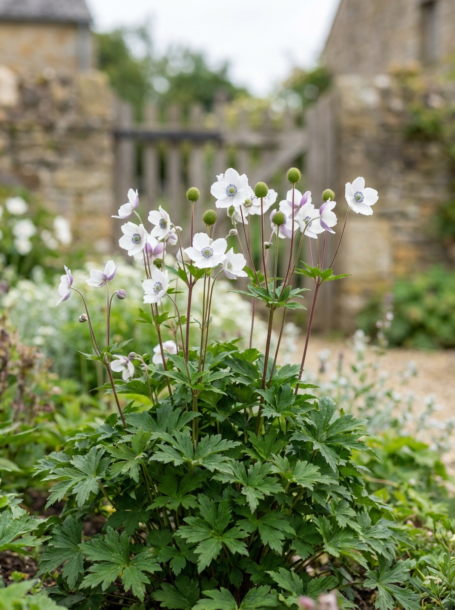 Anemone rivularis est peut-être la plus belle des anémones, blanche avec un dos violet et des étamines gris-violet.