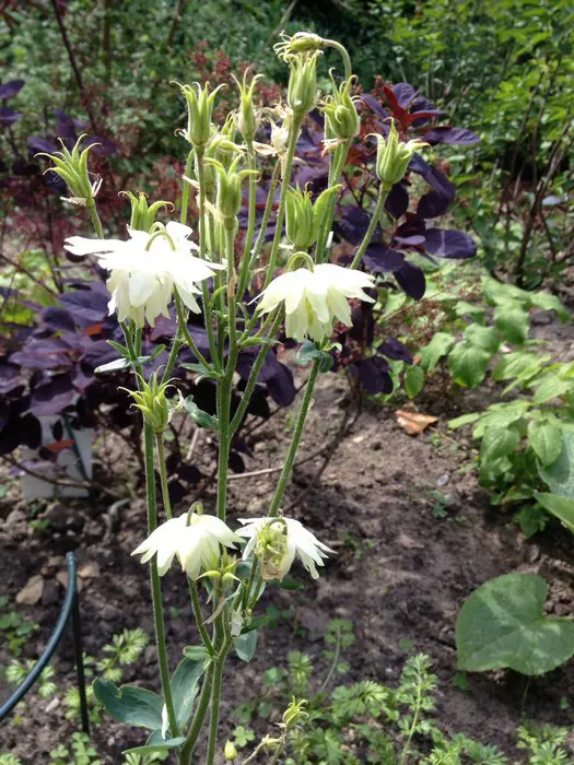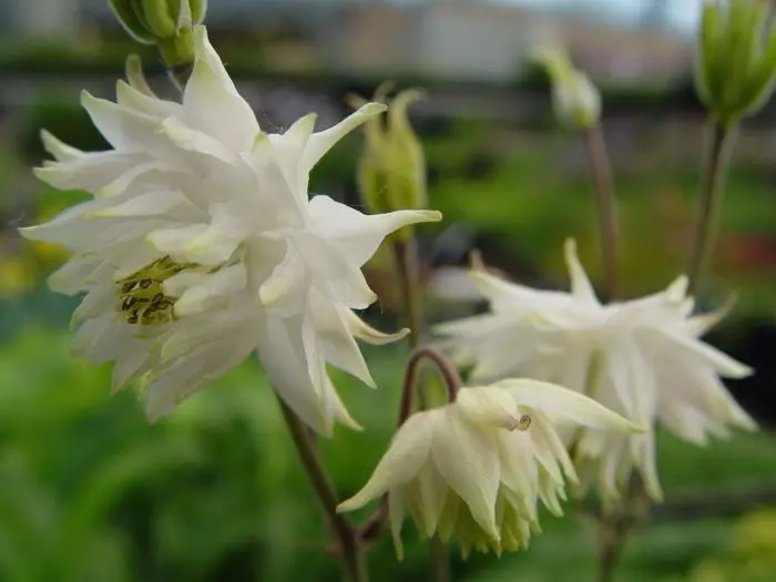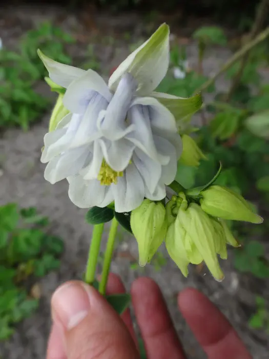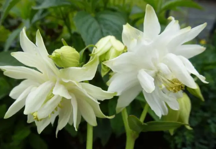 Aquilegia vulgaris 'Green Apples' est une vivace très gracieuse avec des fleurs blanches doubles et des pointes vertes.