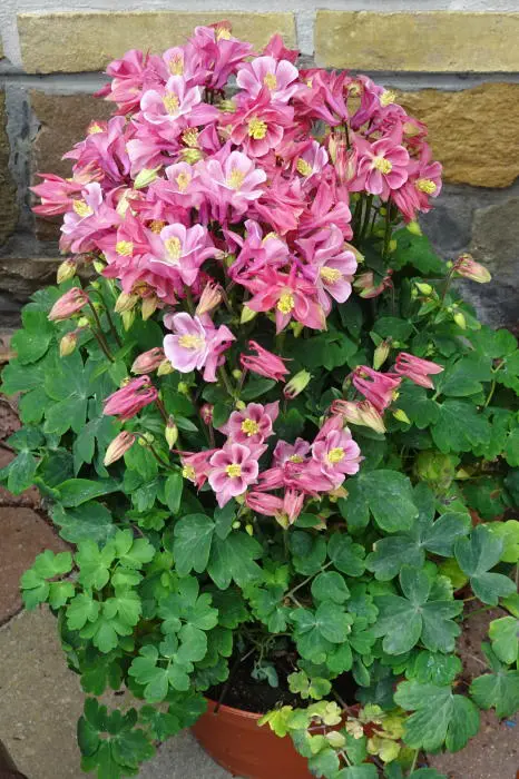 Les columbines de la « série WINKY » se caractérisent par leur faible croissance et leurs fleurs orientées vers le haut, en pots elles restent encore plus basses.