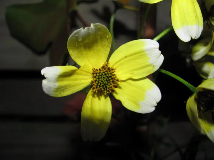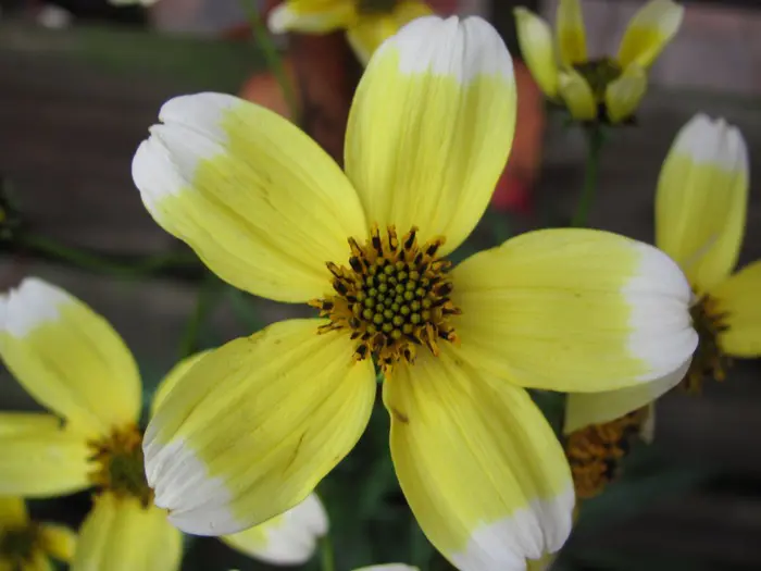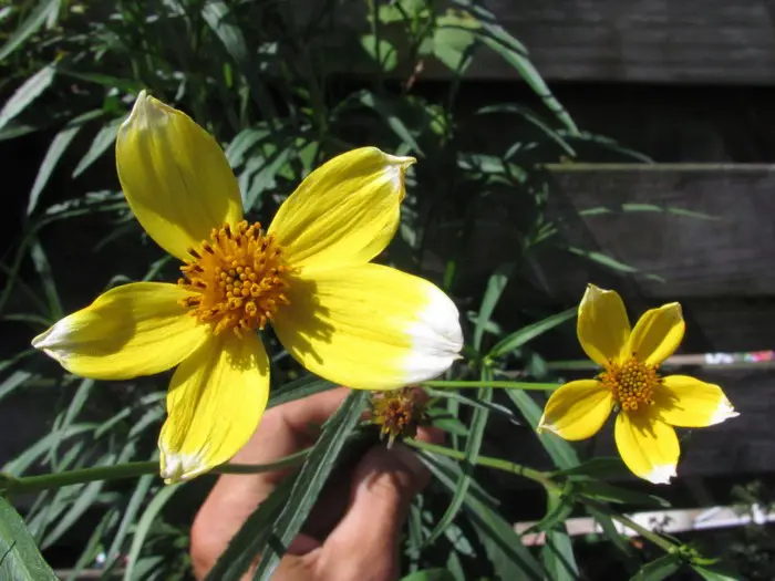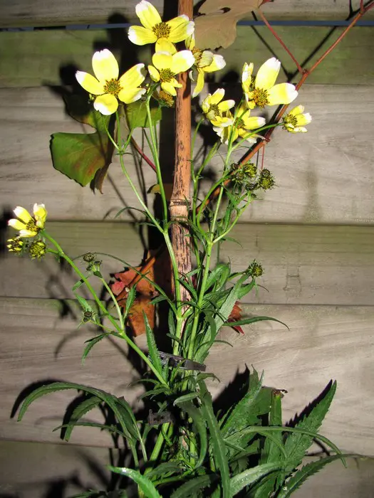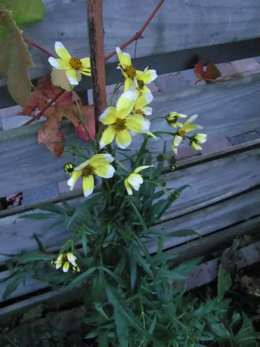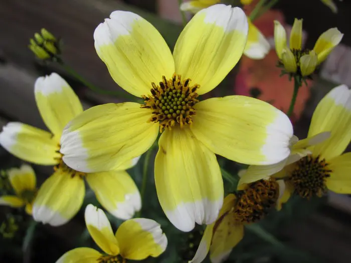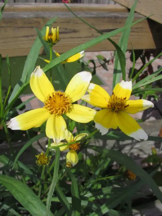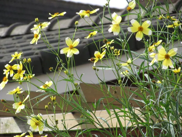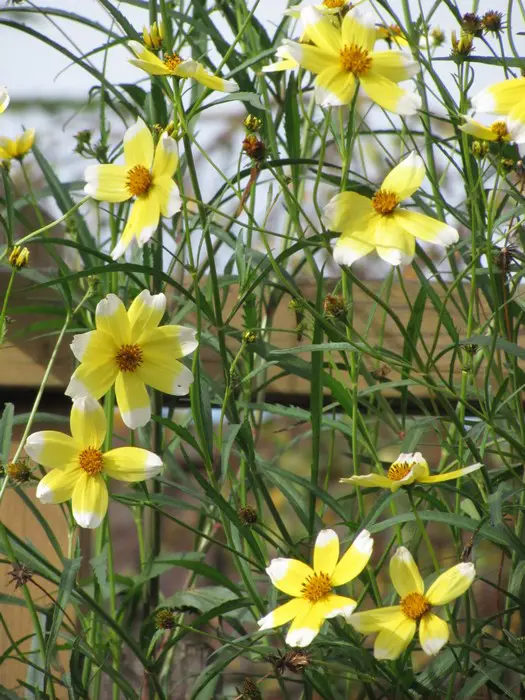 Une plante robuste avec des fleurs jaunes douces semblables à des marguerites et des pointes blanches.