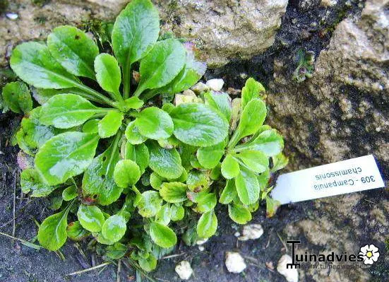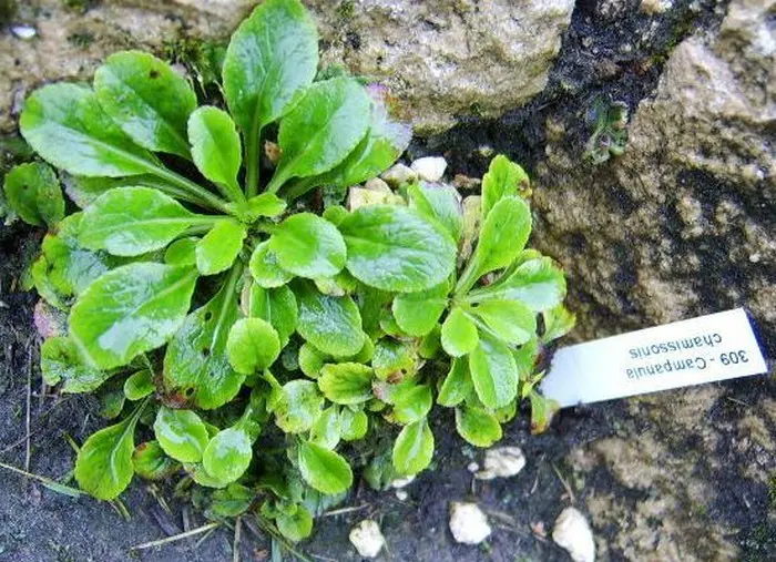 Campanula chamissonis reste basse au sol avec des feuilles vert vif.