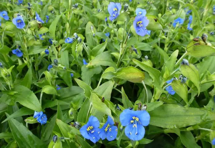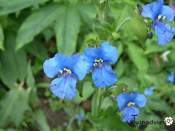 Commelina tuberosa possède une feuille allongée avec des fleurs bleu gentian.