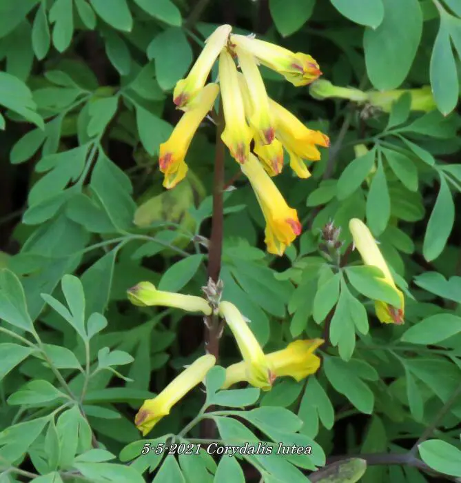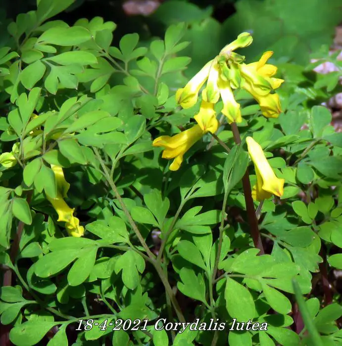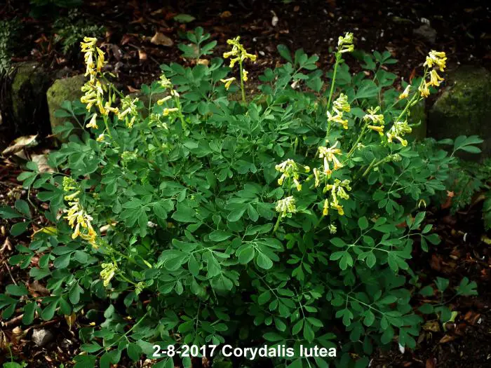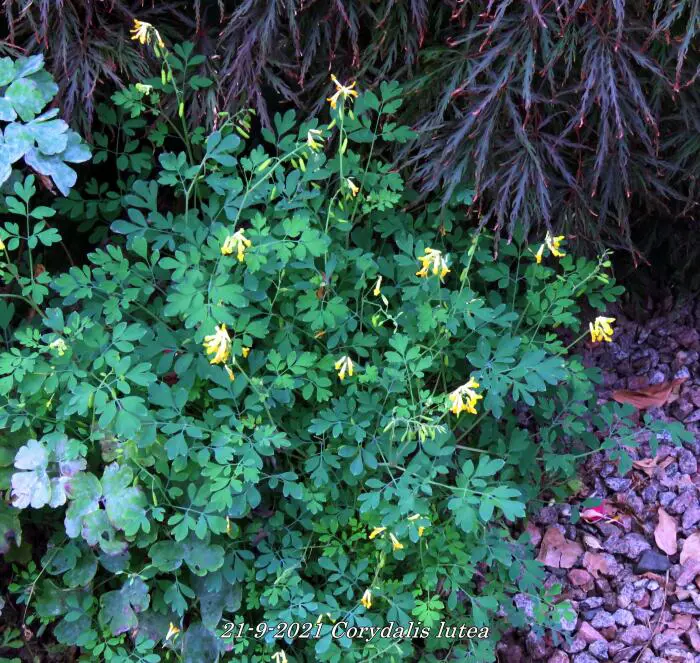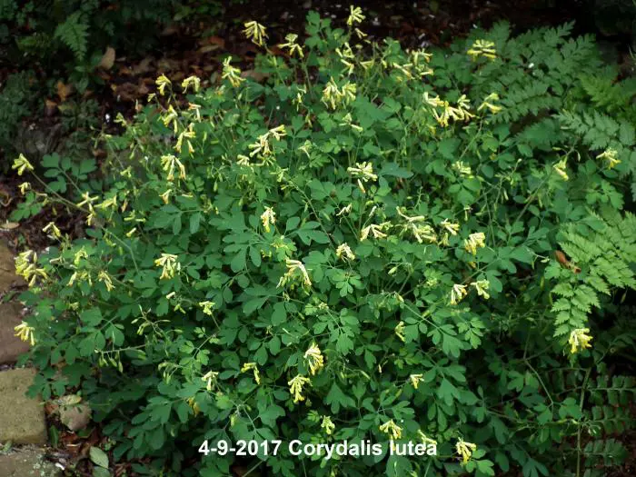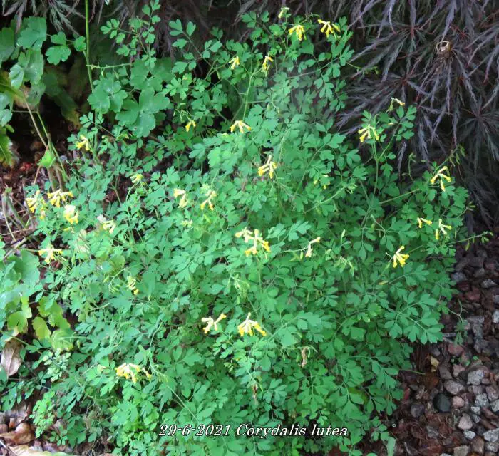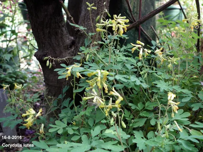 Corydalis lutea est une plante de forêt basse, originaire du sud de l’Europe. Possède des feuilles vertes fraîches attrayantes, semblables à celles des fougères, et des fleurs jaune vif.