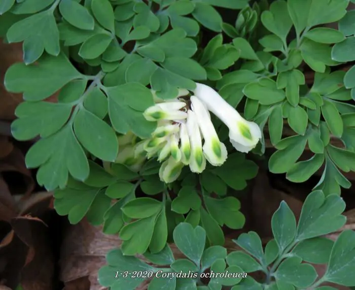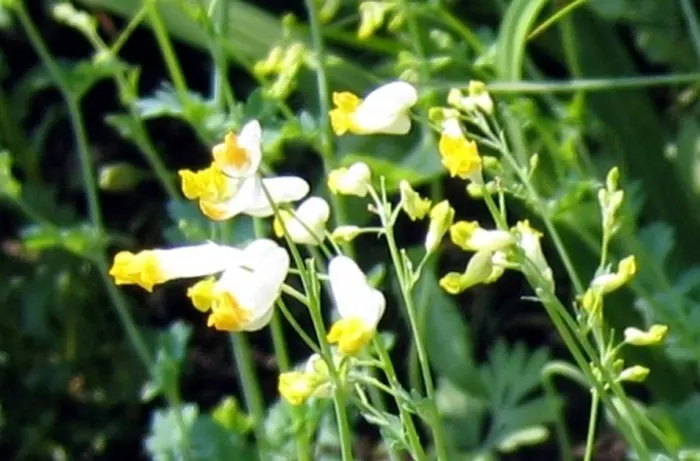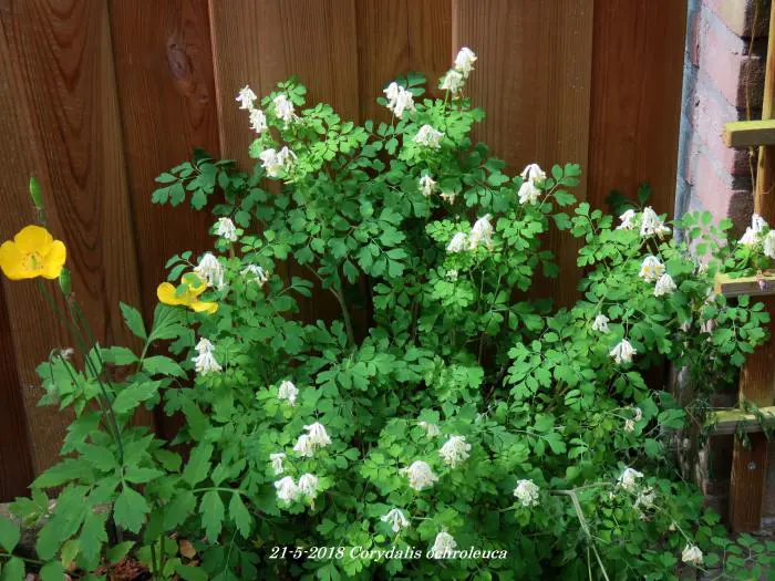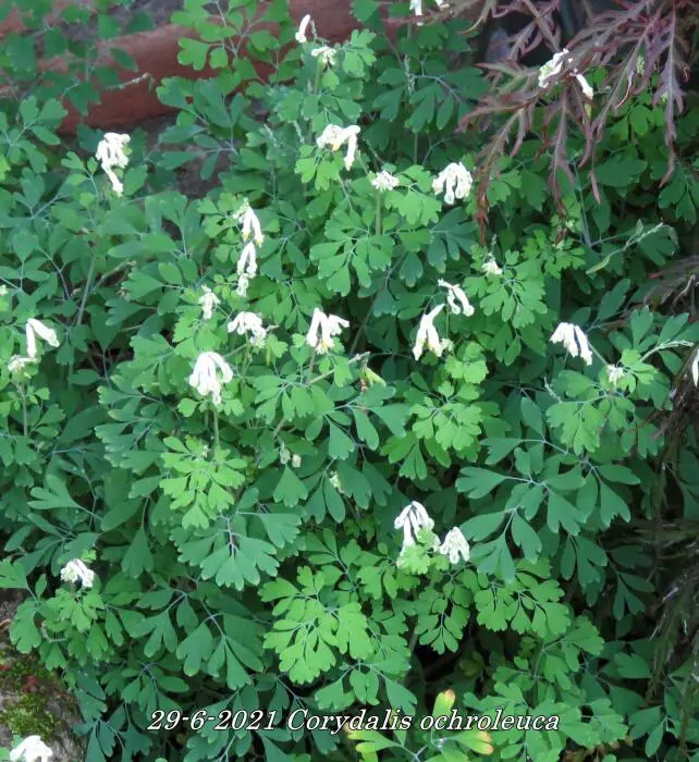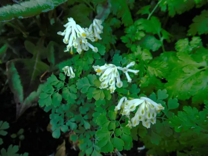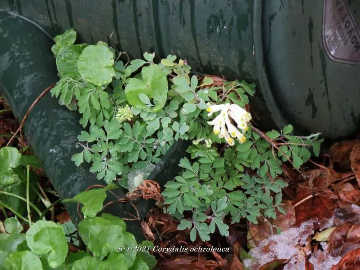 Corydalis ochroleuca est une plante forestière aux feuilles vertes attrayantes semblables à celles des fougères.