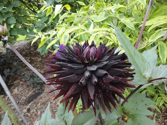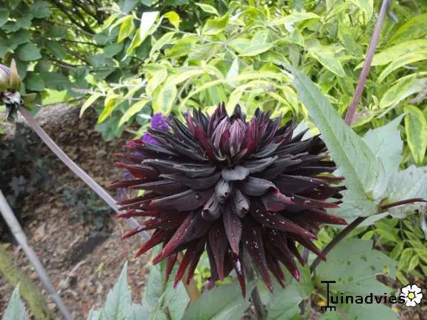 Le dahlia « Black Jack » est un dahlia semi-cactus avec des fleurs noir-rouge bien remplies. Les pétales sont partiellement roulés.