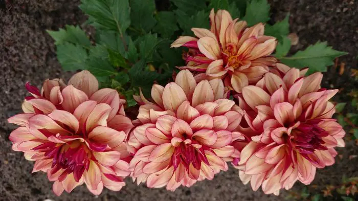La dahlia « Crème de Cognac » est une dahlia de type décoratif. Les fleurs sont bien remplies de larges pétales plats.