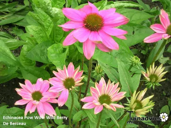 Echinacea purpurea 'Pow wow Wild Berry' fleurit d’un rose violet foncé.