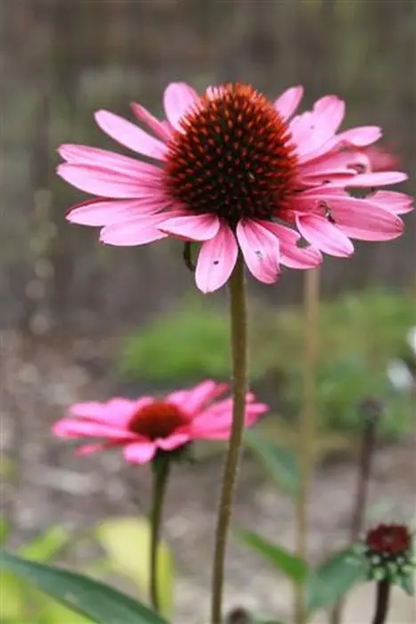 Echinacea purpurea 'Summer Cloud' possède des tiges florales noires frappantes avec des fleurs violet-rose et un cœur brun foncé.