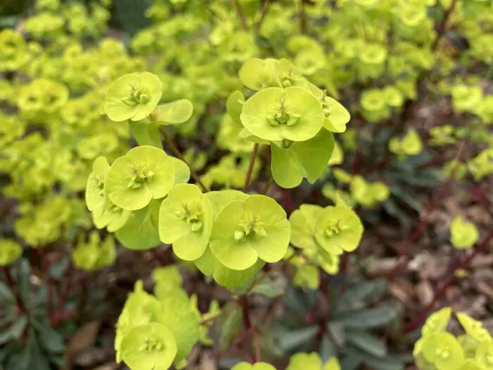 Euphorbia amygdaloides 'Purpurea' est une vivace herbacée au caractère dressé et touffu.