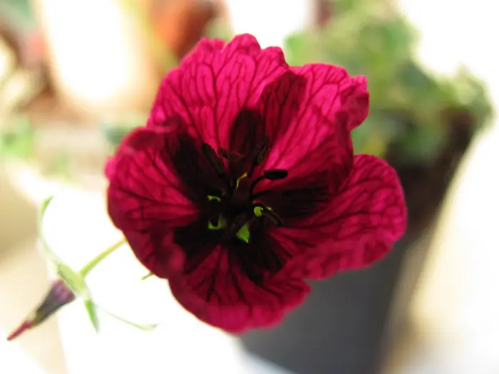 Geranium cinereum 'Purple Pillow' est une espèce naine aux feuilles très divisées et douces, avec une longue période de floraison de fleurs violet-rouge.