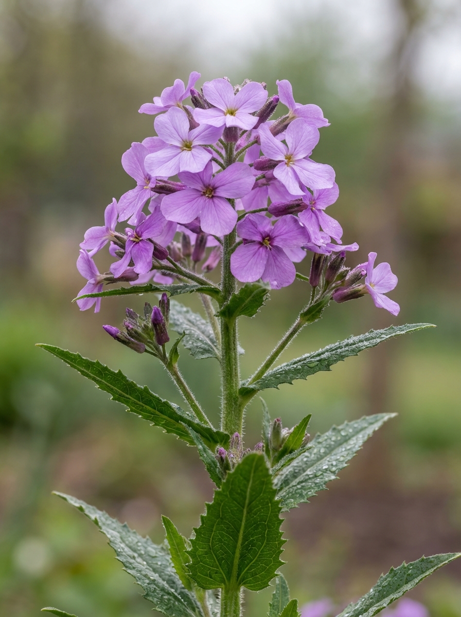Hesperis matronalis est une vivace à courte durée de vie avec des grappes de fleurs violettes qui dégagent un parfum merveilleux, surtout le soir, et sont fréquentées par les papillons de nuit.