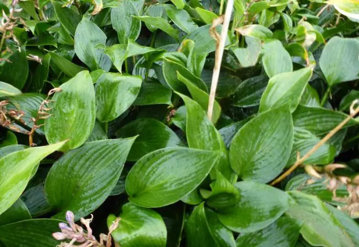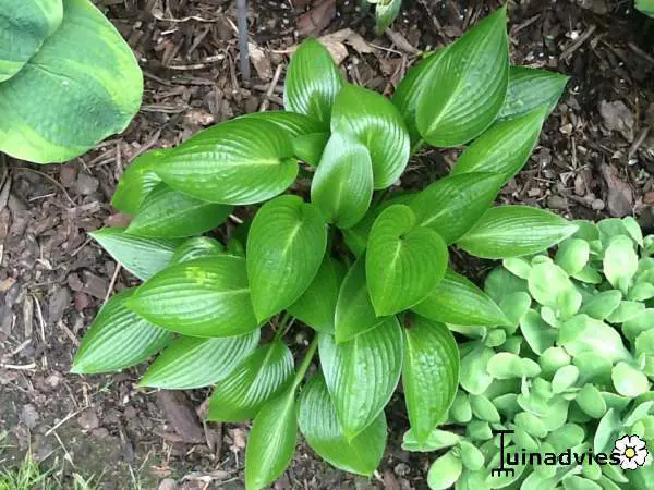 H.'Devon Green' possède une feuille nervurée et brillante et est recommandée pour les endroits ombragés en raison de ses qualités réfléchissant la lumière.