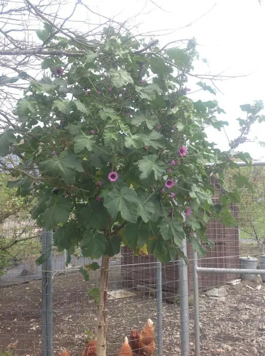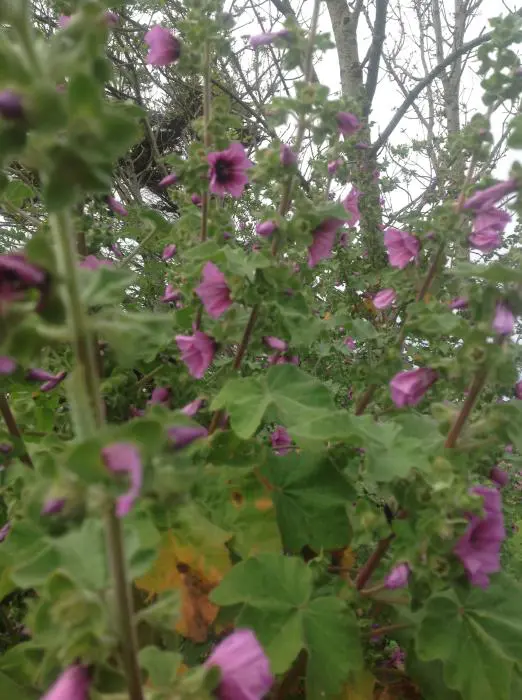 Lavatera arborea ou arbre malva devient une grande plante dressée, comme son nom l’indique, avec des troncs épais. C’est une croissance rapide et elle fleurit la première année avec des fleurs brillantes semblables à des malvas, violette-rosées avec un centre violet foncé. La fleur est comestible.