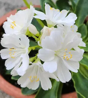 Lewisia a besoin d’une période froide pour fleurir, il est donc préférable de les laisser dehors en hiver dans un endroit abrité et sec.