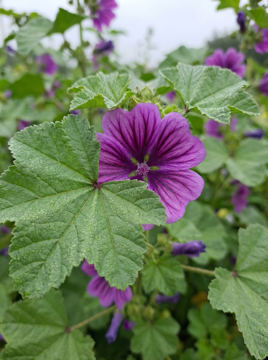 La feuille de la Malva sylvestris var. La Mauritiana est très similaire à celle des trémières trémaires, également de la même taille et de structure grossière. C’est une plante dressée et touffueuse à courte durée de vie.