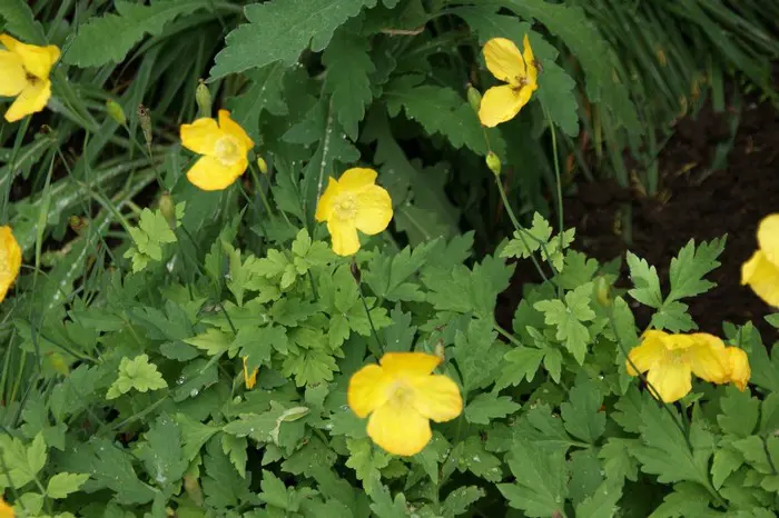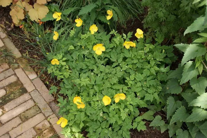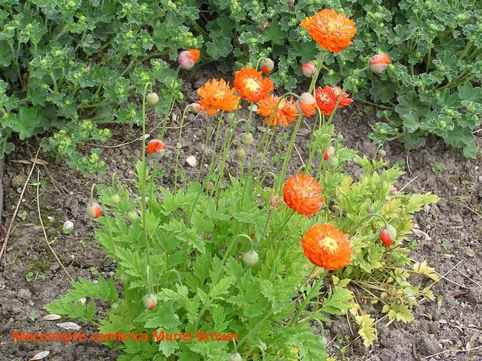 Un étranger à un cultivar est Meconopsis cambrica 'Muriel Brown', qui est doublement orange-rouge.