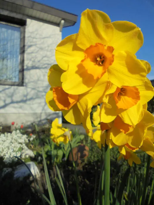 Narcissus 'Martinette' est une jonquille à fleurs multiples avec des grappes de 3 à 5 fleurs par tige. Les fleurs merveilleusement parfumées ont des pétales jaune chaud avec une petite trompette orange.