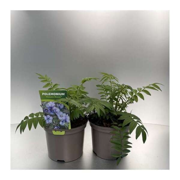 Polemonium yezoense 'Heaven Scent' présente des feuilles d’une beauté saisissante, profondément incisées, teintées de violet chocolat au printemps, plus vertes en été.
