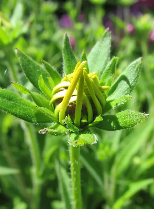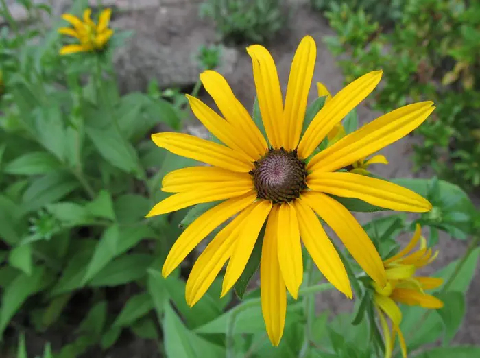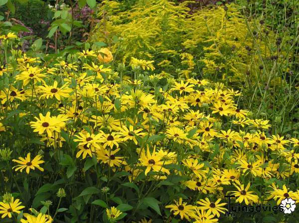 Rudbeckia subtomentosa est une plante dressée et touffueuse avec des feuilles velues d’un vert foncé ovoïde à elliptique.