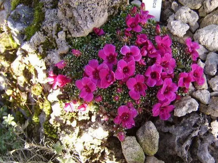 Fleurs très abondantes avec des fleurs fines rose à rouge foncé sur des tiges très courtes.