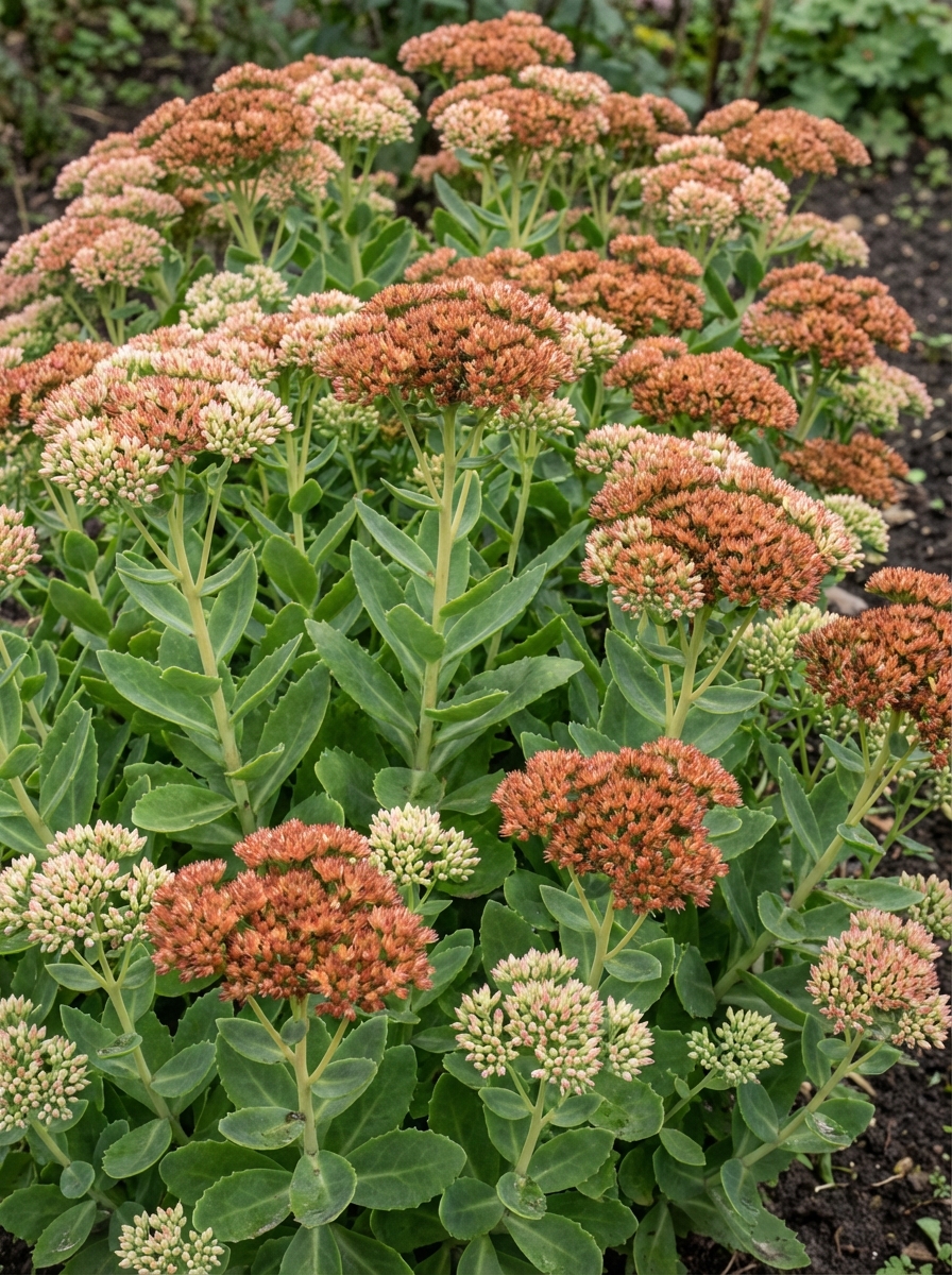 Le sedum 'Herbstfreude' est une bonne plante pour la frontière, au début de l’été vous avez déjà une belle plante aux fleurs vertes qui passent progressivement du rose, du rose-rouge au brun-rose foncé au fil de l’été et ont une belle silhouette hivernale.