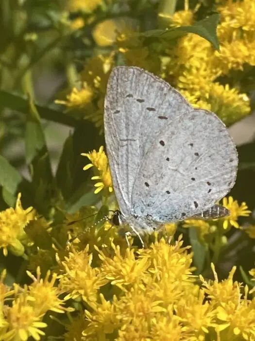 Le cultivar Solidago canadensis 'Nana' reste un peu plus bas.