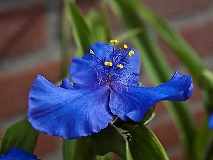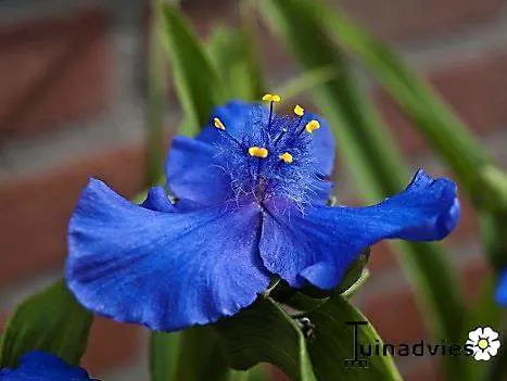 C’est une plante à longues fleurs dont chaque fleur ne fleurit qu’un jour avec le pistil jaune. Les fleurs bleu azur sont en bouquets de trois sur une tige.