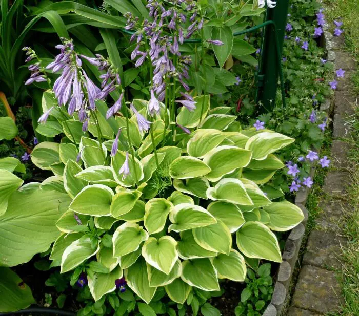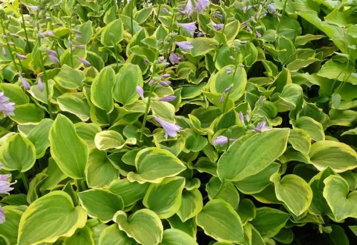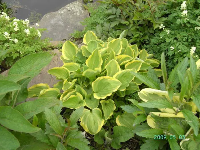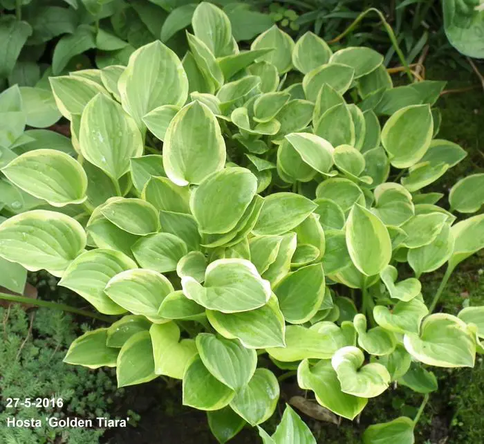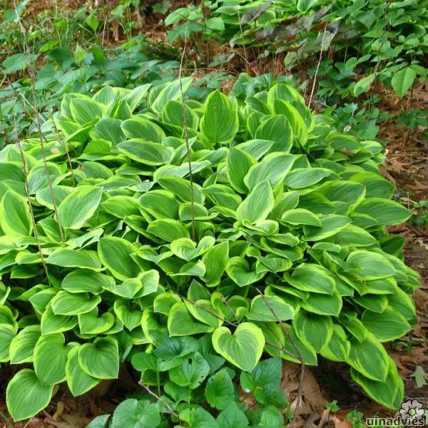 Les feuilles rondes présentent différentes nuances de vert avec un bord jaune.