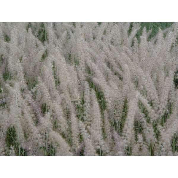 Les feuilles herbacées du Pennisetum orientale « Small Tails » sont gris-vert brillant.