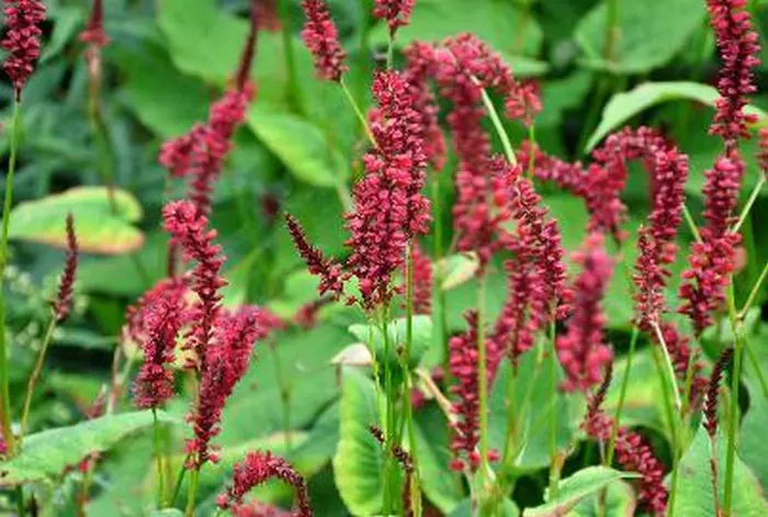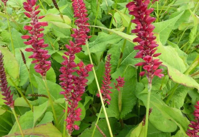 Persicaria amplexicaulis 'Red Baron' est une grande plante majestueuse avec des épines florales rouge foncé, particulièrement belle dans les groupes plus nombreux.