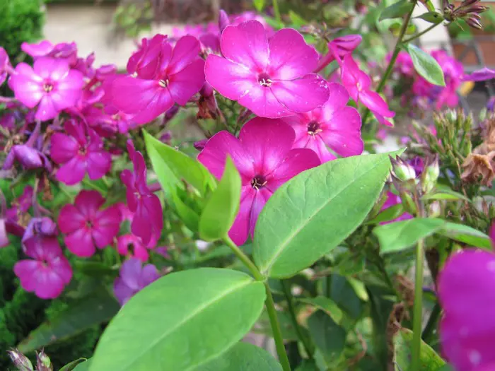 Un Phlox de la série Flamme avec des fleurs violettes vives.