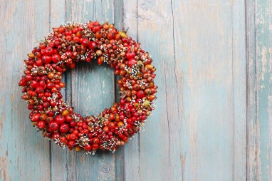Tip: heb je grotere elementen voorzien zoals een dennenappel, bevestig deze dan eerst en werk er daarna rondom met de vruchten.