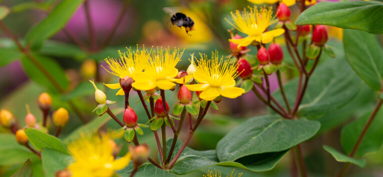 Hertshooi is een compacte struik die van juni tot augustus bloeit met felgele bloemen en opvallend lange meeldraden. Na de bloei verschijnen er dieprode bessen die veel worden gebruikt in de bloemsierkunst en die ook populair zijn bij vogels en andere dieren. Het zijn de bessen die de struik aantrekkelijk maken in het najaar! Deze struik goeit tot 50 à 70 cm hoog en houdt van een zonnige, warme plek in de tuin. Zorg voor een goed doorlaatbare, vochtige en humusrijke grond voor de beste resultaten.