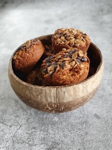 Een heerlijke on-the-go muffin met pindapasta en chocoladestukjes. Deze gezonde muffin met verrassende ingrediënten is helemaal vegan en olievrij! In een mum van tijd maak je de lekkerste muffins, klaar als heerlijk tussendoortje. Of eet de muffins als ontbijt, want dankzij de havermout en pompoen heb je meteen een verzadigd gevoel.