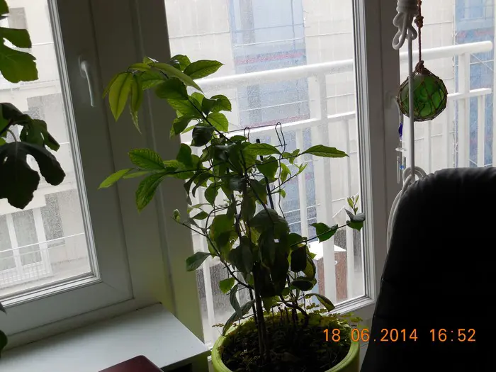 Le kiwi jaune se porte bien contre un mur sud en plein soleil. Les fleurs sont en mai avec des fleurs rouge-blanc.