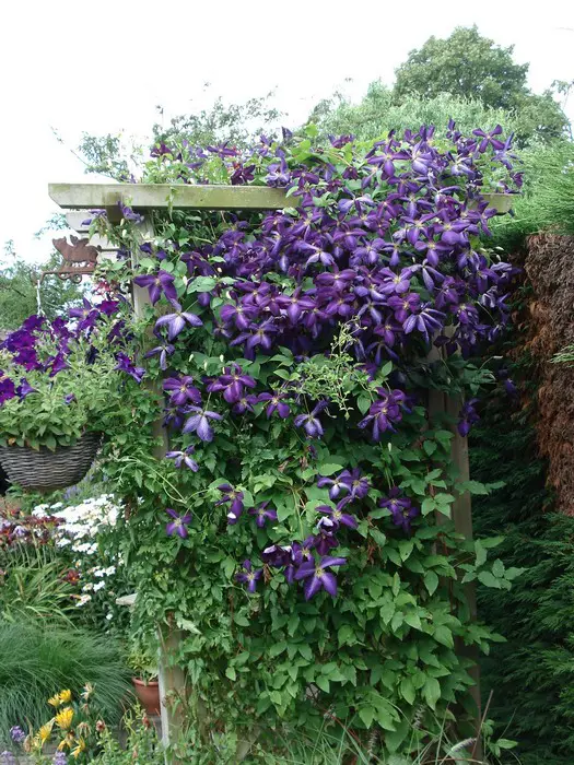 Une clématite à petites fleurs du groupe Viticella et donc peu sensible au flétrissement